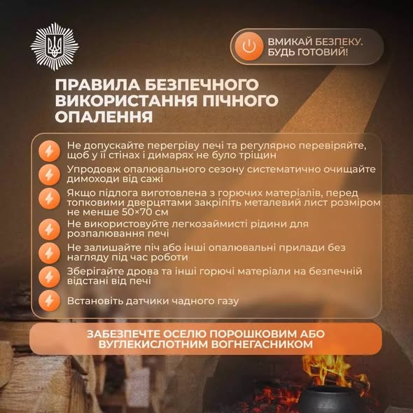 Безпека — це щоденна відповідальність. Генератори, газові пальники, пічне опалення, зарядні станції, свічки та електрообігрівачі потребують уважного користування.